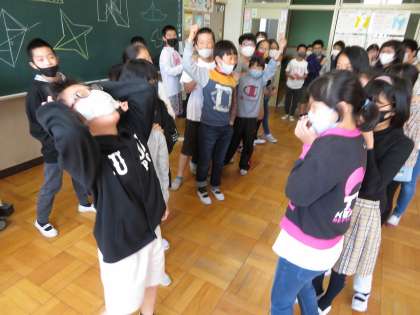 係の活動で,みんな遊びを企画しています。外で遊んだり,教室内で遊んだり,1つの遊びに偏らないように考えて遊んでいます。