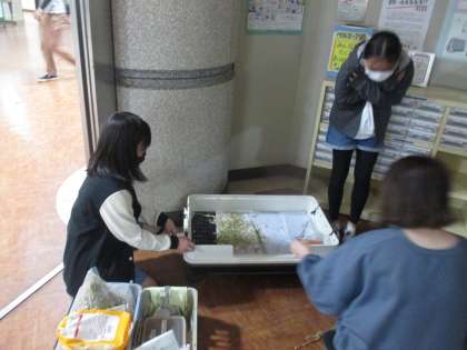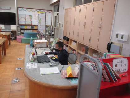 今日は,図書室の整理,本の貸し出しやウサギ小屋をきれいにしていました!
