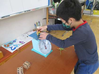 基準としているサイコロ1個の重さ(60グラム)の半分の重さだと子どもからふりかえることができました。
