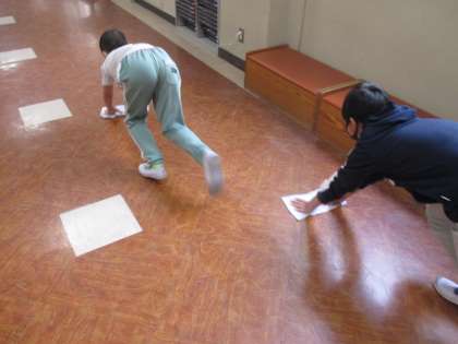 昼休みに一年生の教室の前が汚れているのを見つけて自分から積極的に拭き掃除をしてくれました!