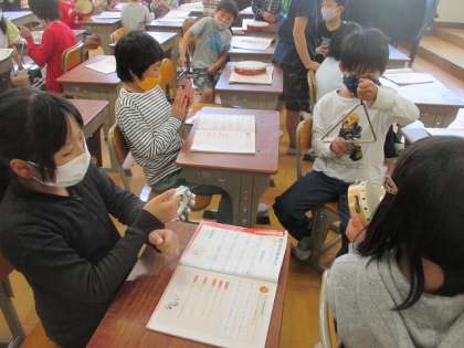 4年生の音楽では,リズムに合わせて楽器を演奏する活動があります。どのグループも自分のお気に入りの打楽器を使って音を組み合わせていました。活動後はふりかえりをして次に頑張りたいことを決めています。ここからどんな演奏ができるようになるのでしょう。