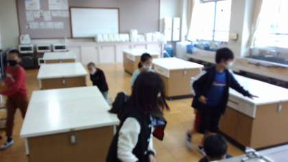 家庭科の学習で家庭科室の探検,コンロの使い方の学習をしました。