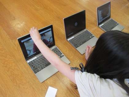 きらめき学習では Teams というアプリを使って,テレビ会議を行いました。教室とゆめホールをつないで「もしもーし。」「聞こえる—。」と楽しそうにおしゃべりしていました。上手く接続できなかった子もいましたが,それはこれからの課題。まずは使ってみることが大切。GIGA端末が子どもの資質能力の向上にどのように貢献するのかを今後も考えていきます。