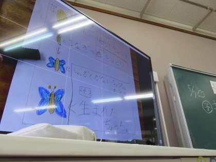 卵から出てすぐの幼虫の姿も観察できました。子どもたちはそこから,どのようにモンシロチョウが成長していくのか予想しました。モンシロチョウの成長が楽しみですね。