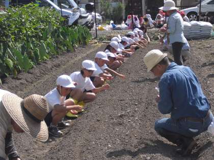 京都市北部農業振興センター「未来の農業サポーター育成事業」の取組で,社会科「農家でつくられているもの」の学習とつなげて体験をします。