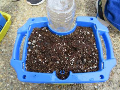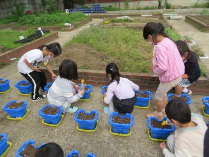1年生は生活科の学習であさがおの種を植えました。