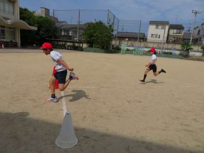 体育の学習で50m走の記録を測りました。