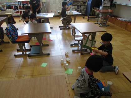 今日の最高記録は紙コップ9個 すごいです。