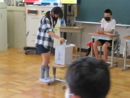 社会科の学習で,選挙と税金について学びました。選挙の投票率が年々下がっていることを知り,自分達の住む日本を良いものにするために,18歳になって選挙権がもらえたら投票に行きたいという思いをもっていました。