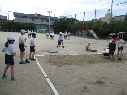 タブレットを使って,お手本の動画と比べて,助走・踏み切り・跳んでいる時の姿勢・着地に注目して学習を進めています。