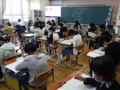 昨年度は,新型コロナウイルス感染のため実施されませんでしたが,2年ぶりの実施です。子どもたちは,必死に問題に取り組んでいました。