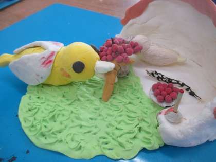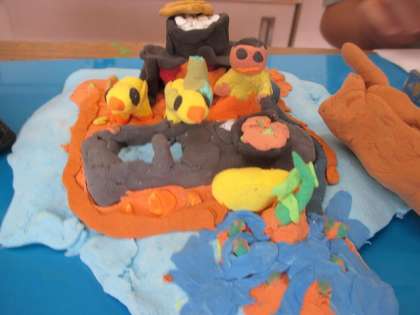 図工で作成した作品をもって帰ります。この作品は「元気のおまもり」という単元で,「元気」からイメージできるものを粘土でつくりました。お家でも是非一緒に鑑賞してみてください。