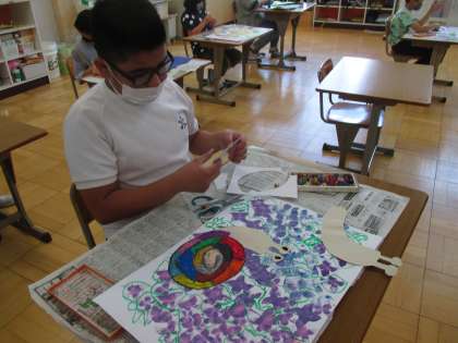 教室にかざると,ぱっと華やかになりました。