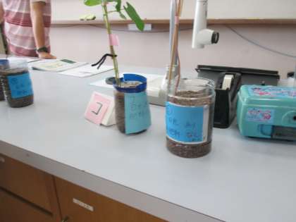 植物の成長の条件について学習をしています。