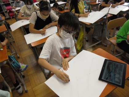 まずはGIGA端末で風景を写真に撮りました。絵に立体感が出るように,写真を撮る角度を工夫しました。
