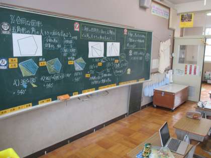 今日の算数科の授業では,多角形の角の大きさの和について学習をしました。