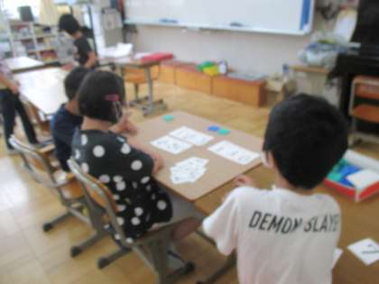 10人で大きな数の桁を確かめた後は,チームに分かれて問題を出し合います。