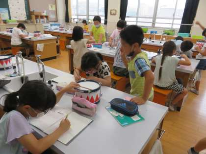 たたいたところに触ってみたり,たたき方を変えてみたりして,気付いたことや疑問に思ったことを,付せんに書き出します