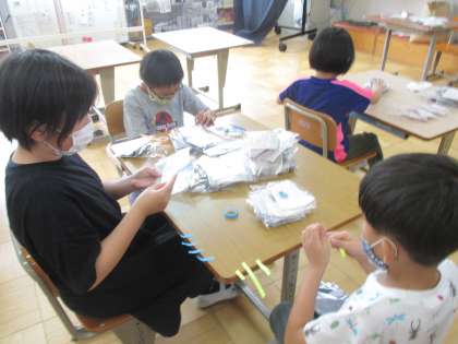 引き続き,ゆめ工房さんとつながろうでは,マスクの梱包を行っています。