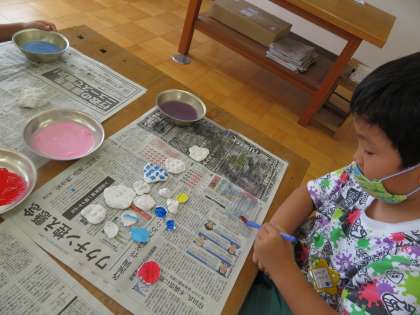 紙粘土で,教室のなかにある「でこぼこ」をうつしとりました。いろいろな形のでこぼこを発見できました。紙粘土がしっかり乾いたら,思い思いに色をつけました。
