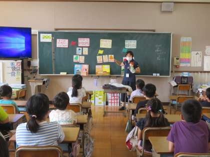 早田先生と一緒に教えてくれた「栄養ぼうや」が可愛くて,みんな楽しそうに話を聞いていました。
