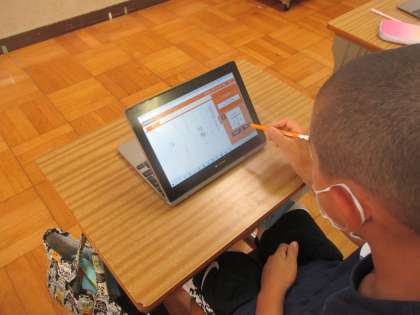 GIGA端末を使って漢字の学習,算数・社会・理科の復習をしています。