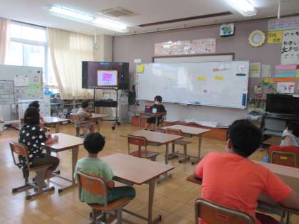 iPadを使って,色あて問題を友達に出しているところです。
