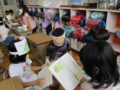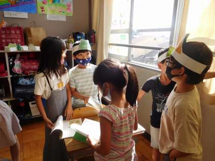 2年生は,今,国語科で「お手紙」の学習をしています。この学習では,音読げきをするために,登場人物の会話と行動を確かめたり,気持ちを読んだりしています。今日は,役に分かれて,音読をしながら,がまくんとかえるくんの気持ちについて想像を広げました。学習後の振り返りで,子どもたちは,「がまくんとかえるくんの気持ちにぴったりの音読げきにしたいな」と話していました。音読げき発表会が今から楽しみです。