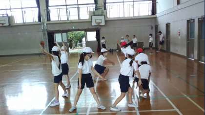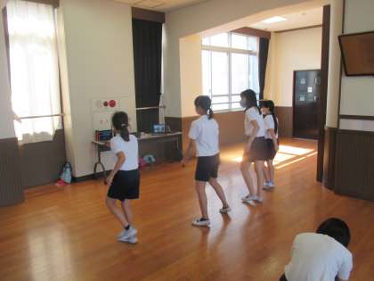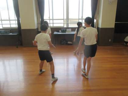 自分たちで振付けを考えて,表現運動を行います。