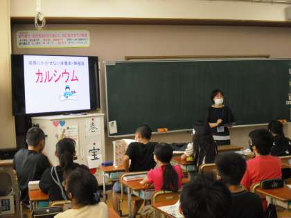 家庭科の学習で,カルシウムについて早田先生に教えていただきました。骨を丈夫にする大切な今の時期に,しっかりとカルシウムはもちろんの事,バランスの良い食事を意識していってほしいと思います。