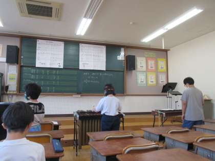 自分で考えたリズムでリズム遊びを楽しんだ後は,合奏を楽しみました。 木琴や鈴,リコーダーなどを練習してみんなで合わせると,とても素敵な音になりました。