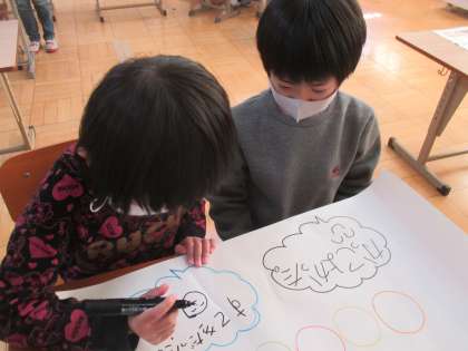 みんなで協力して 来週の学習発表会に向けてのグッズづくりをがんばっています。