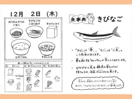 きびなごの特徴を読み,「本当に線の模様がある!」「帯って着物を着る時につけるんだね。似ているね。」等と関心を持って味わえたようです。