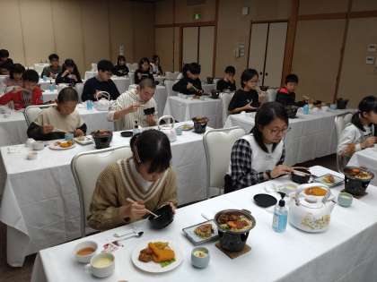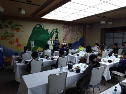 いただきますの後,食事の間は,このご時世なので黙食。そして食べ終わった後はマスクを着けてだんらんをしました。たくさんのごちそうでみんなおなか一杯になりました。みんな「おいしかった」と満足気なようすでした。