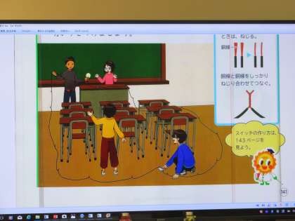 理科では,導線や電池,豆電球などを使った実験をしながら,電気について学習しています。今日は電気の流れる速さについて意見を交流しました。電化製品のスイッチを入れた時のことなど,自身の生活の経験から,「電気はものすごい速さで流れているのではないか」と予想している児童がいました。写真は電気が流れる速さを体感する実験の準備をしている様子です。