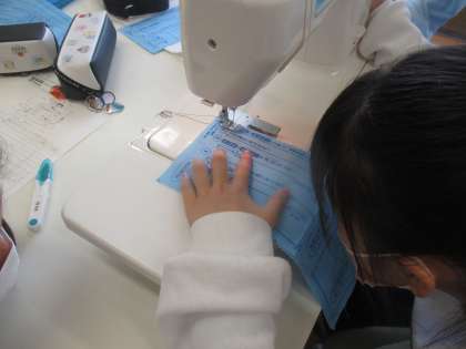 まっすぐ縫ったり方向を変えたりすることが難しい様子でしたが,回数を重ねるごとに上達している姿が見られました。