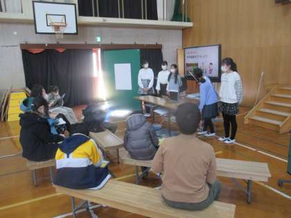 感染症対策をして,6年生のきらめきの発表を聞きました。