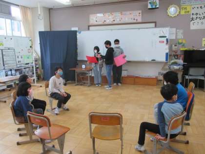 6年生と一緒に楽しい時間を過ごしました。企画したのは、下級生。6年生へのメッセージカード渡しもしました。ゲームも6年生と一緒にした思い出のあそび!楽しかったね。