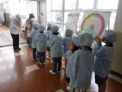 今日から給食がはじまりました。1年生の子どもたちは,はじめての給食です。自分たちで準備やお当番もばっちりできました。