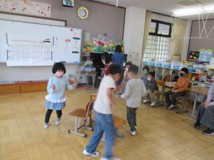 みんな元気いっぱいです。先生も負けずに体を動かすぞ