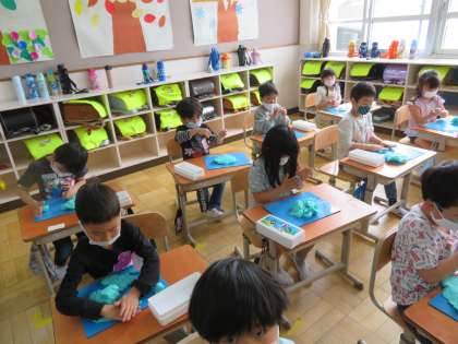 粘土を手でちぎったり丸めたりして楽しんで取り組みました。