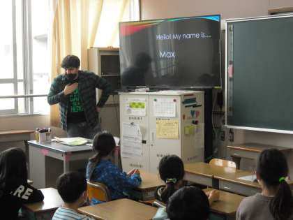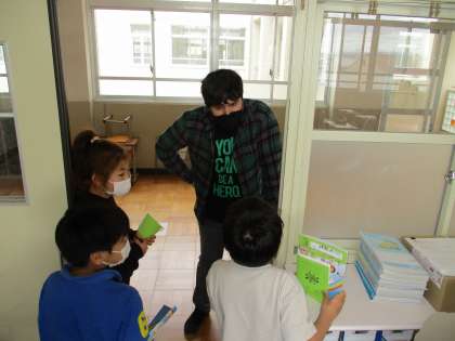 先生の自己紹介を聞いたり,動物の名前を英語で答えたりすることを通して,英語に親しみました。