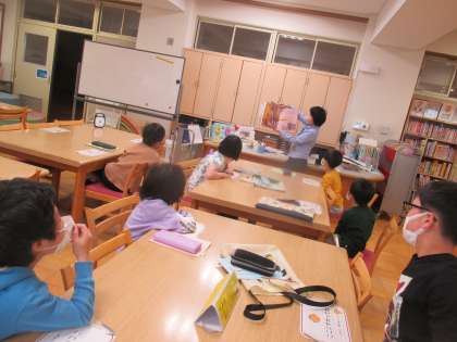 図書館司書の田中先生に,図書館の使い方を教えていただいき,読み聞かせもしてもらいました。恐竜好きのお友達も多く,目をキラキラさせて見入っていました。本を読むたびに読書ノートに記入していきます。目指せ100冊!
