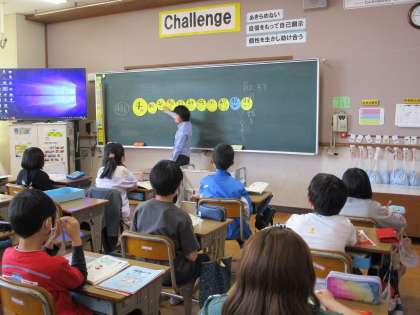 司書の田中先生に十進分類表についての授業をしていただきました。色々な種類の本に親しみ,100冊読書を目指しましょう。