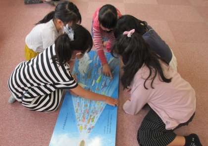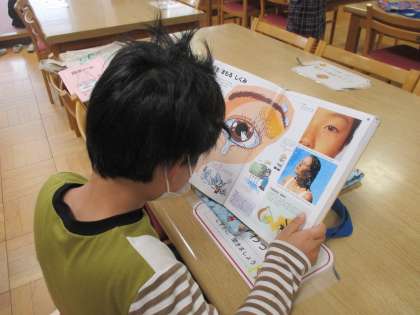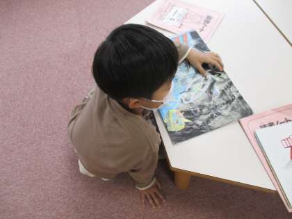 図書館で本をかりました。読みたい本を見つけて,楽しそうに読む姿が見られました。