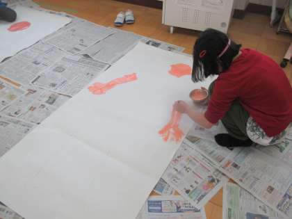 友達とお互いに自分の型をとりました。今日は,色塗り!出来上がりが楽しみです。