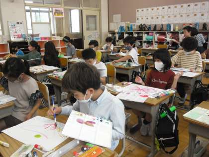 3年生は,図画工作で絵の具を使って絵を描きました。