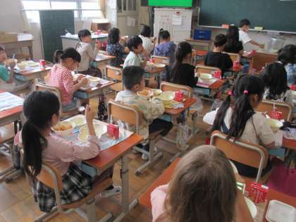 昨日の給食は,チキンライスでした。嬉しそうにもりもり食べていました。