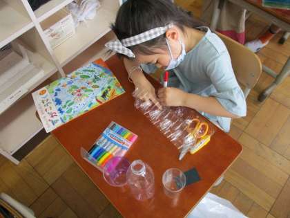くもりの一日でしたが,少しだけ太陽が顔をだしてくれた時間がありました。「きれい!」「色を塗ったところがきらきらしている。」と楽しそうな子どもたちでした。