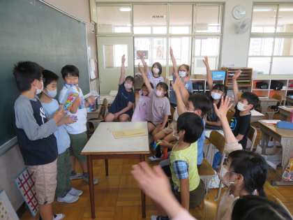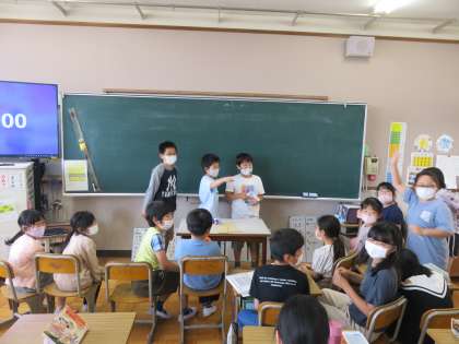 係活動の出し物で子ども達が楽しんでいます。自分たちで企画してから宣伝し,たくさんの友達が集まってくれると嬉しいですね。にぎやかな笑い声も聞こえてきました。